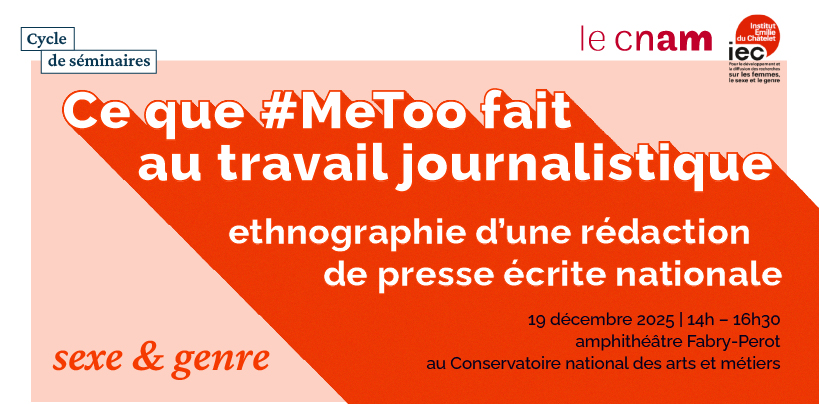 Ce que #MeToo fait au travail journalistique : ethnographie d’une rédaction de presse écrite nationale19 décembre 2025Cette intervention examinera en quoi le moment #MeToo de diffusion et de relégitimation des idées féministes, notamment sur la question des violences sexistes et sexuelles, façonne une organisation de presse écrite nationale, les routines de travail et les contenus publiés par ses journalistes. Elle mettra au jour les évolutions post #MeToo des normes et pratiques journalistiques sur les questions de genre et de féminismes, et les débats et tensions qu’elles suscitent au sein de la rédaction.