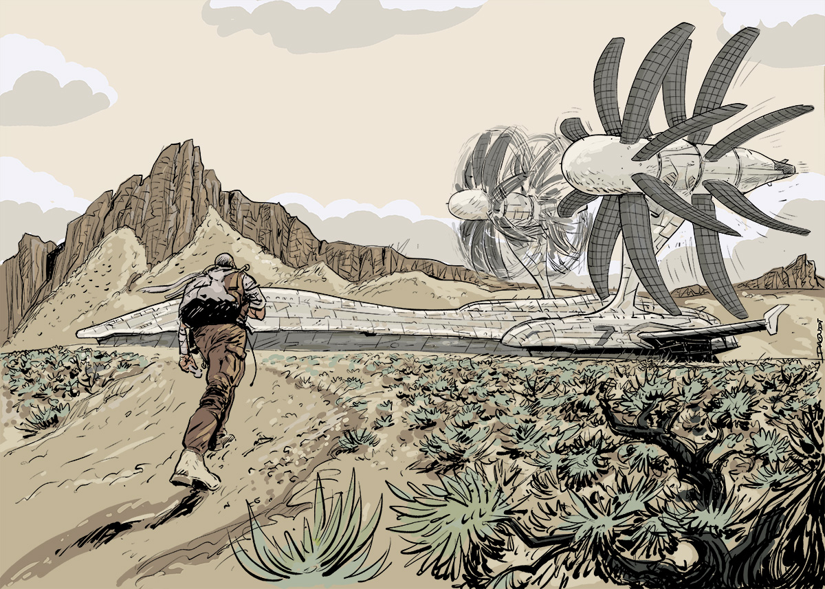 Amphibie : Transit terrestre sur train roulant multi-roues escamotables. Moteurs électriques à haut rendement.