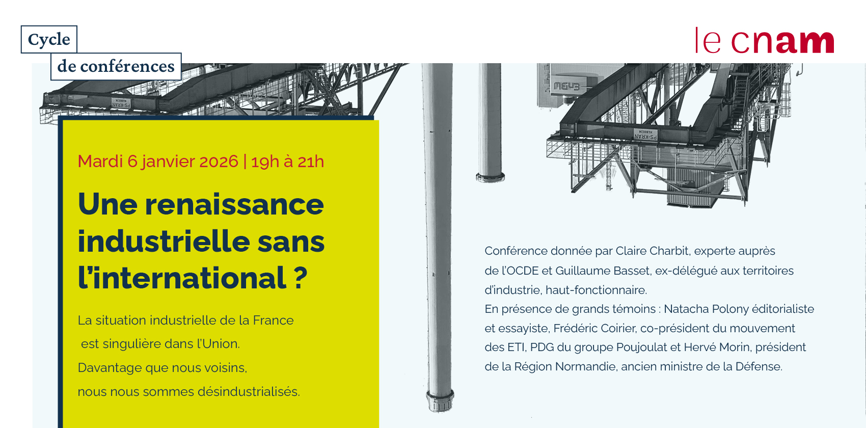 Une conférence donnée par Claire Charbit experte auprès de l'OCDE, Guillaume Basset ex délégué aux territoires d'industrie, haut-fonctionnaire et en présence de grands témoins : Natacha Polony essayiste et éditorialiste, Hervé Morin, président de la Région Normandie, ancien ministre de la Défense et Jérôme Coirier co-président du mouvement des ETI, PDG du groupe Poujoulat.