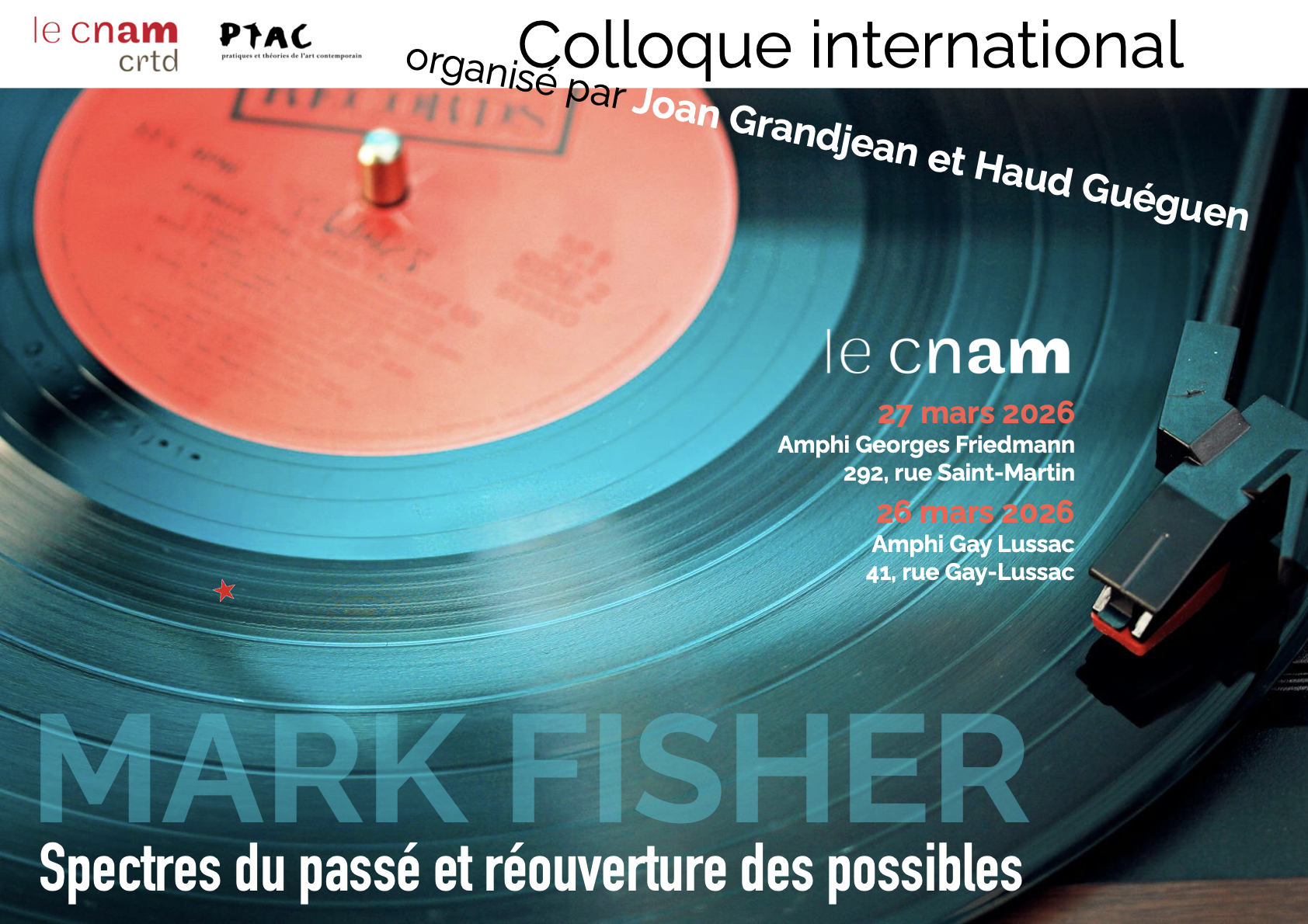 Mark Fisher : spectres du passé et réouverture des possibles26 mars 202627 mars 2026Participez au colloque interdisciplinaire et international organisé par Joan Grandjean et Haud Guéguen : "Mark Fisher : spectres du passé et réouverture des possibles" qui a lieu au Cnam les 26 et 27 mars 2026. L’œuvre de Mark Fisher (1968-2017) continue de nourrir les réflexions critiques sur notre époque. Théoricien inclassable, Fisher a développé une critique radicale du « réalisme capitaliste » qui traverse les frontières disciplinaires. -